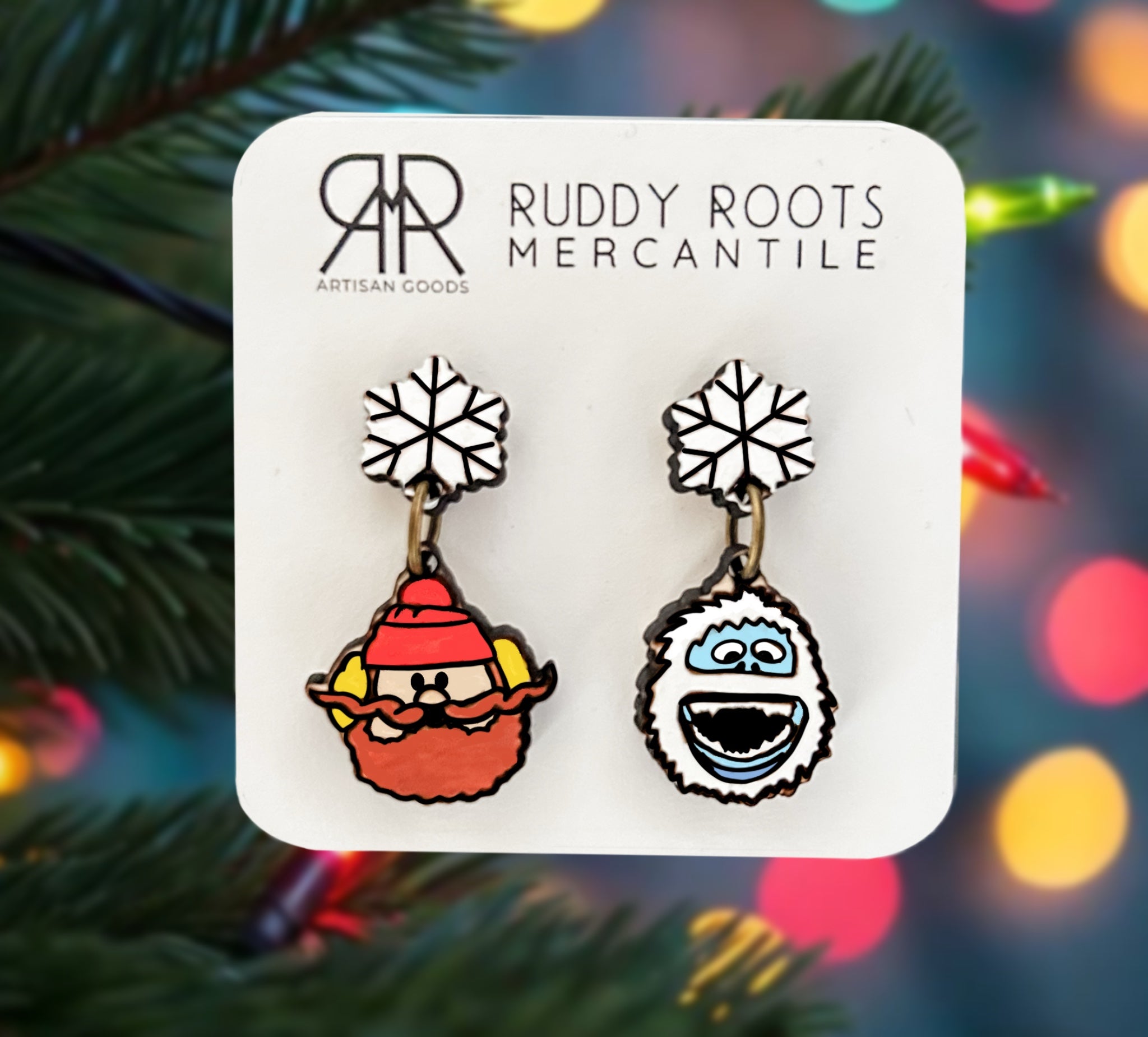 Celebrate classic Christmas nostalgia with these hand-painted Yukon Cornelius & Bumble earrings!